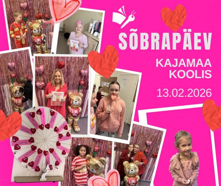 Kajamaa Koolis möödus 13.02 peetud sõbrapäev täpselt nii rõõmsalt, värviliselt ja südamlikult, nagu lootsime! Kogu koolipere sai päeva jooksul osa vahvatest tegevustest, üllatustest ja sõbralikest kohtumistest. Siin on väike ülevaade sellest, mis toimus: ❤️ Fotosein 1. korrusel Fotosein oli terve päeva üks populaarsemaid kohti. Pilte kogunes tõeliselt palju! ❤️ Numbrimäng ja sõbra leidmine Hommikul loositi igale õpilasele number, mille paariline tuli päeva jooksul üles leida. Kui sama numbriga õpilane oli leitud, mindi koos fotoseina juurde, kus ootamas väike sõbra‑auhind. ❤️ 3. vahetund – tunnustuste jagamine õues Kolmandas vahetunnis kogunes kogu koolipere õues koolimaja ette. Jagati tunnustusi: kõige sõbralikumad, kõige abivalmimad, suurima naeratusega jne. Õnne meie tublidele ja tänud kõigile, kes hääletasid! ❤️ Õnneratas 4. vahetunnis Pärast lõunasööki suundusid õpilased 1. korruse õpetajate toa juurde, et keerutada õnneratast. Väike elevus ja palju põnevaid võite – kõigil oli võimalus proovida, kas sõbrapäeva õnn naeratab talle. ❤️ Stiilipäev: punane & roosa Meie kool oli reedel tõeliselt värvikirev! Õpilased ja õpetajad kandsid punast ja roosat ning kõige punase‑roosamad said ka ära märgitud. ❤️ Aitäh kõigile! Iga naeratus, tervitus, värviline riideese ja soe sõna tegid selle päeva meeledejäävaks.
