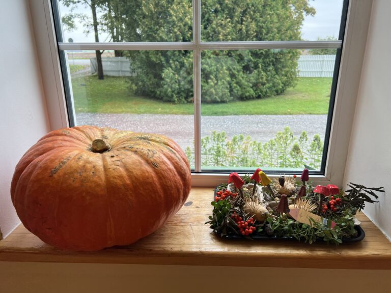 Saalis on juba vaatamiseks vahvad porgandid, hästi suur kõrvits, natuke seenemetsa esimese klassi poolt ja üks armas siilipoiss. Veel on aega tuua oma sügisene kompositsioon või sügisannid kooli!