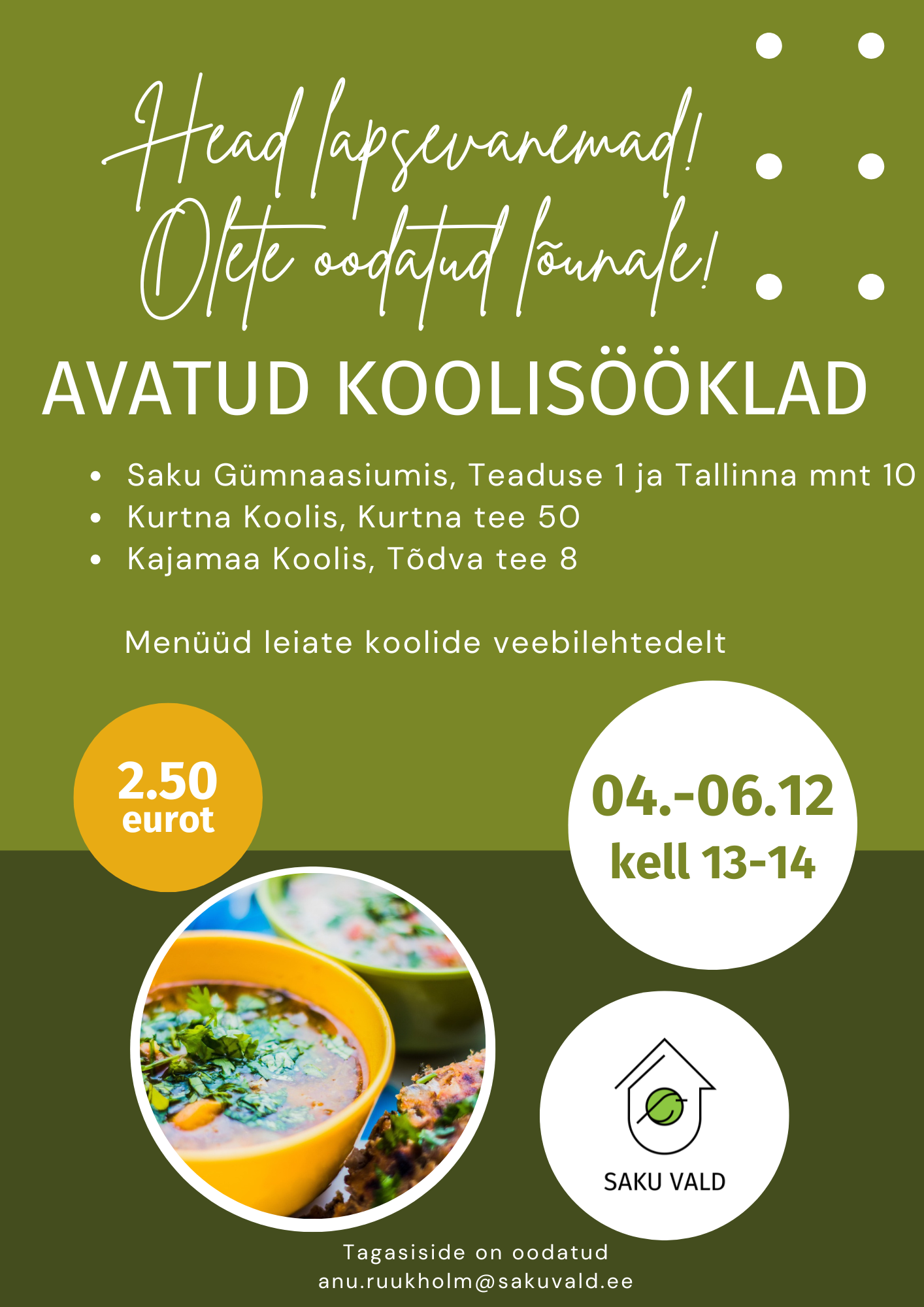 Avatud koolisööklate päevadkajamaa21. nov. 2024Teated 4.-6.dets. 2024 toimub Saku valla koolides Avatud koolisööklate päevad.