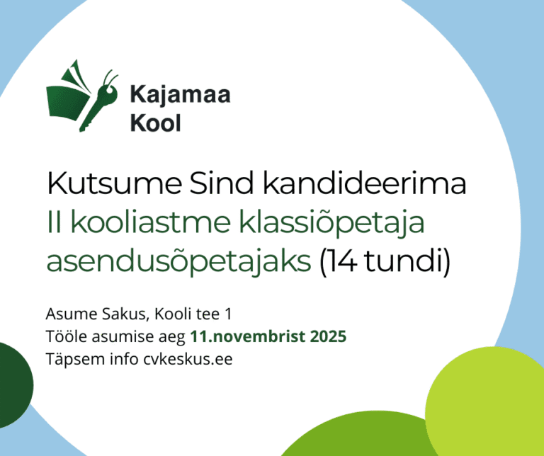 Kutsume Sind kandideerima Kajamaa Kooli II kooliastme klassiõpetaja asendusõpetajaks (14 tundi)