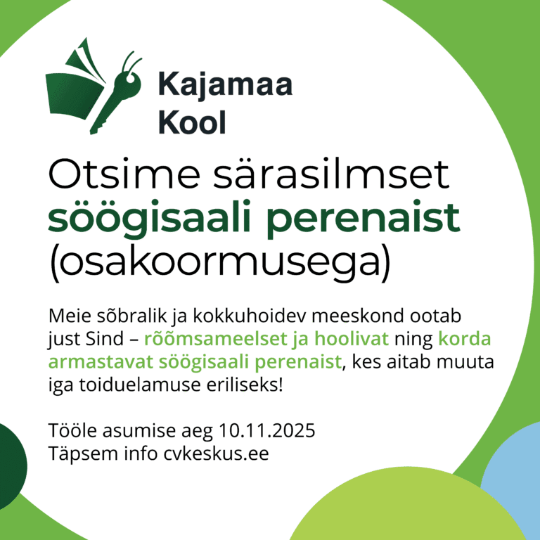 Kui väärtustad tööd õpilastega, soovid anda panuse laste arengusse ning naudid vahetut suhtlust õpilastega, lastevanematega ja kolleegidega, siis ootame Sind kandideerima meie kooli osakoormusega asendusõpetajaks. Mis on Sinu põhiülesanne? Kajamaa Kool otsib sõbralikku, hoolivat ja vastutustundlikku asendusõpetajat, kes asendaks meie pühendunud…