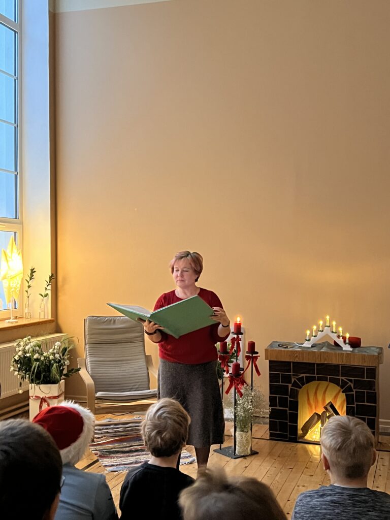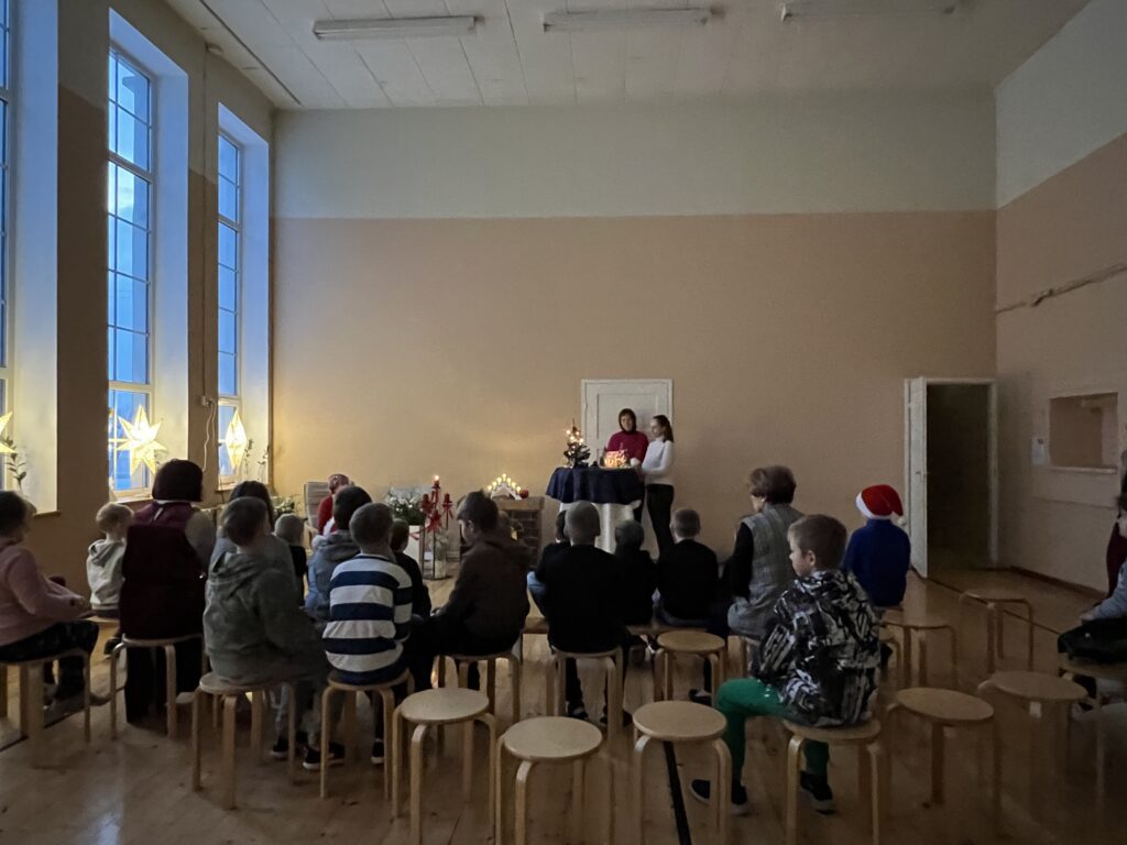 1. klassi õpetajad Tiina ja Kairi jagasid meiega imelist lugu päkapikusussist, kes armastas komme süüa ning tugitöötaja Kaire esitas kauni luuletuse jõuluootusest.