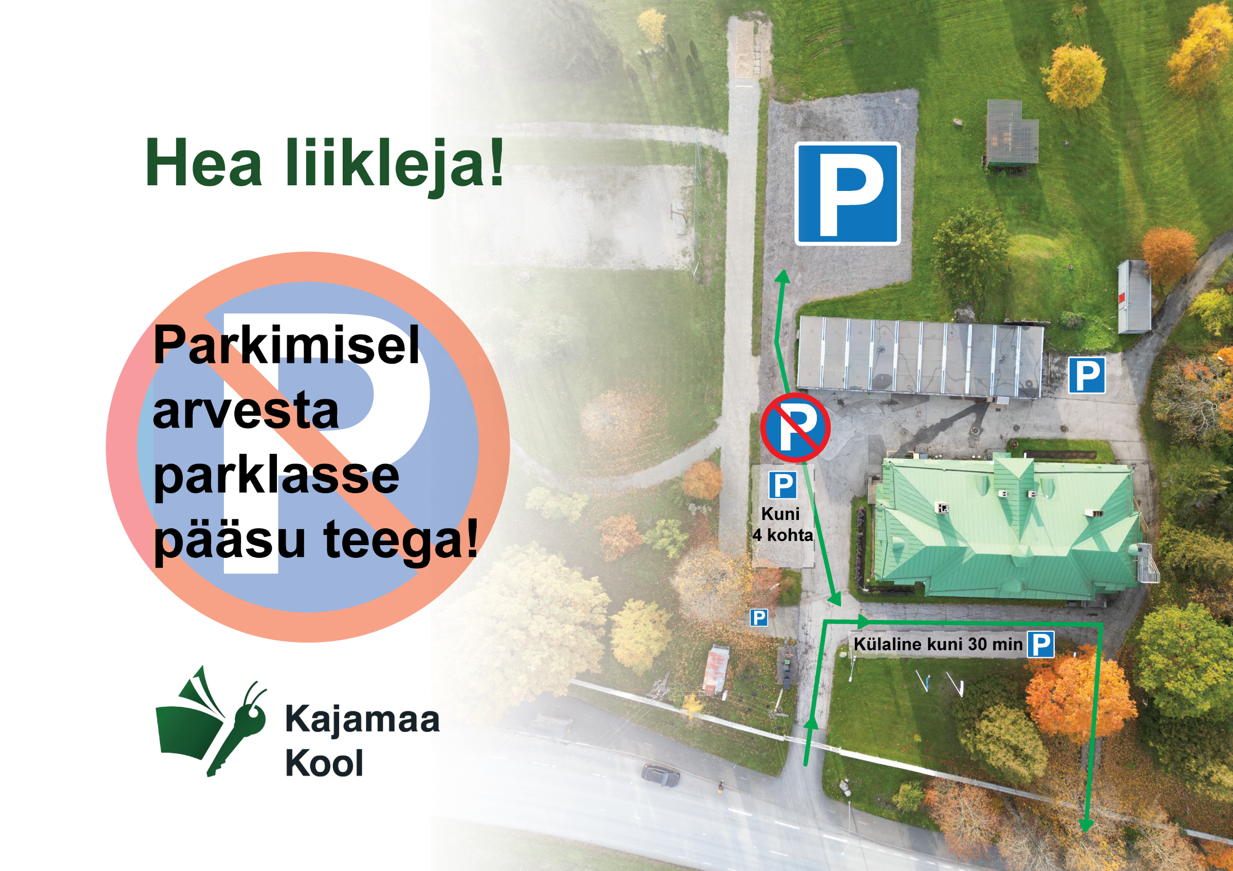 Hea koolihoovis liikleja!kajamaa22. jaan. 2025Teated Juhime tähelepanu Kajamaa Kooli parrkimiskorraldusele. Palume parkla teed mitte kinni parkida! Täname!