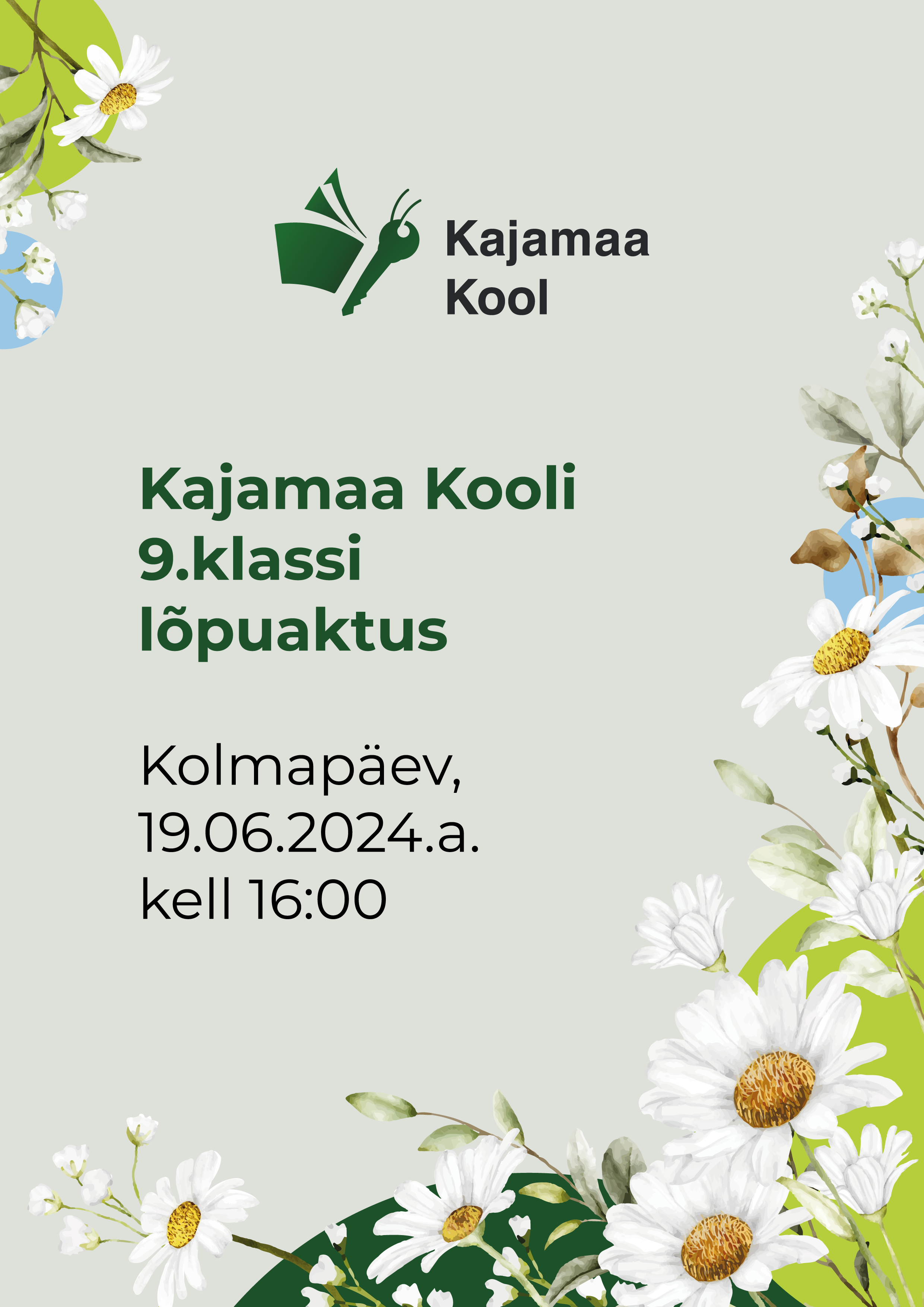Kajamaa Kooli 9. klassi lõpuaktus toimub kolmapäeval, 19. juunil kell 16.00.