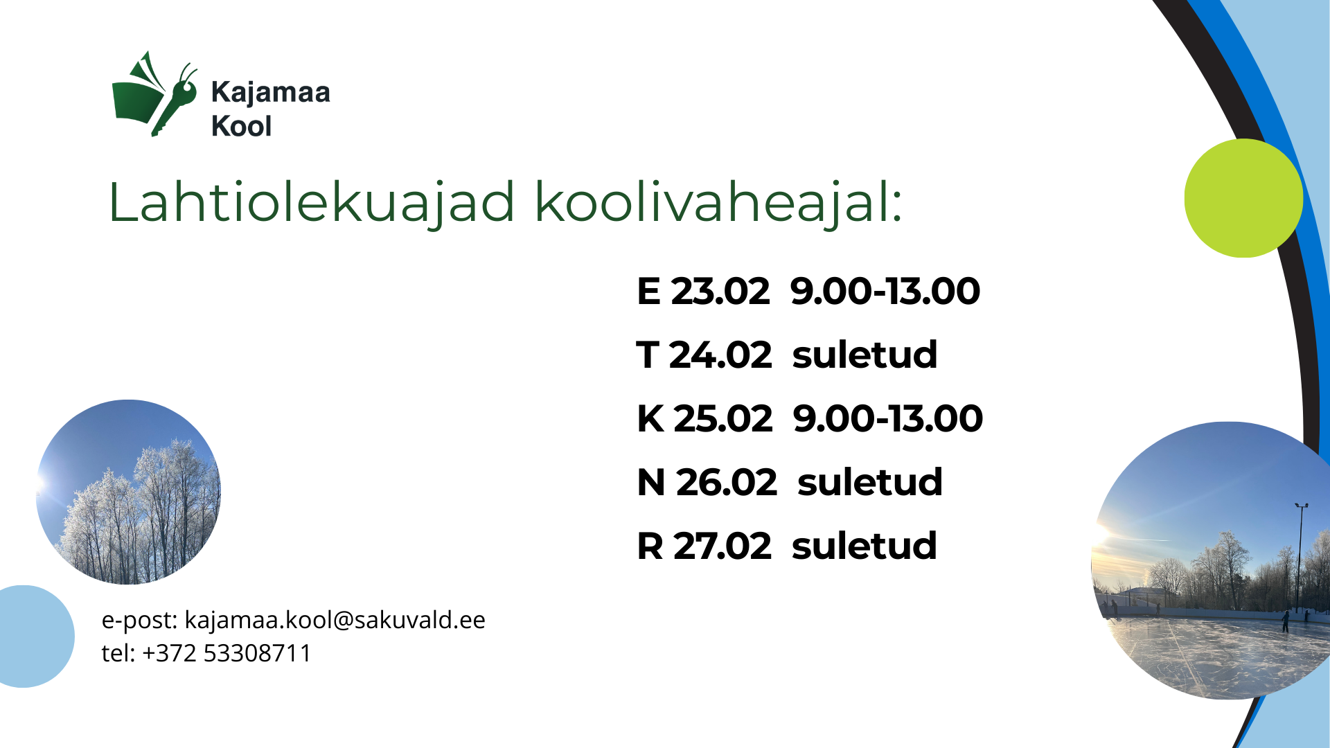 Kajamaa Kooli lahtiolekuajad koolivaheajal