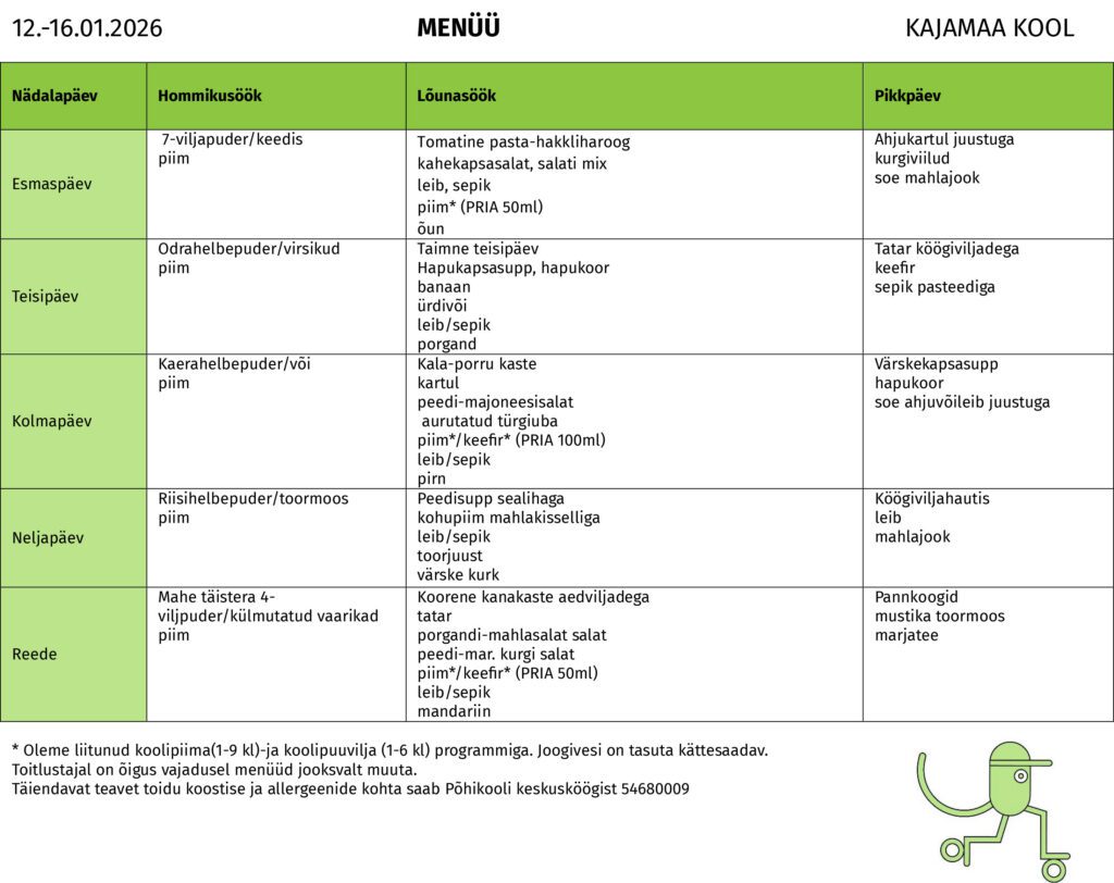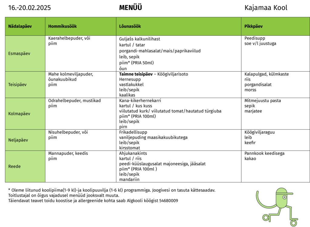 5. kooli personali lõunasöögi maksumus 2,00 eurot;