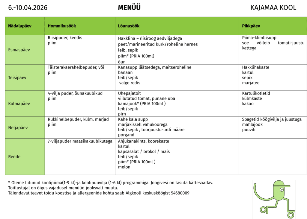 6. külaliste lõunasöögi maksumus 3,00 eurot.